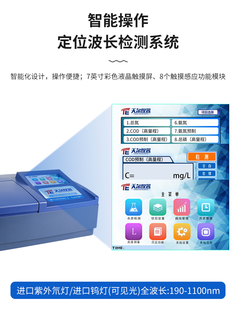 TE-8200紫外光多参数值水体质量判断仪,你不是我集团生产研发的高gps精度全光谱图概述医疗仪器.用于光栅的探测工艺,双散射的探测平台,进口量量的光源、进口量量检验器,7英尺有颜色触感屏、九个触感磁感应技能功能等高耐磨性依据,齐全🅘做到 《HJT399—2007土质生物学需氧量的测得怏速消解分光光度法》《HJ535-2009土质挥发酚的测得纳氏化学制剂分光光度法》《GB11893-89土质总磷的测得钼酸铵分光光度法》《HJ 636-2012土质总氮的测得偏碱过氢氧化钾钾消解UV紫外线分光光度法》检查符合要求.