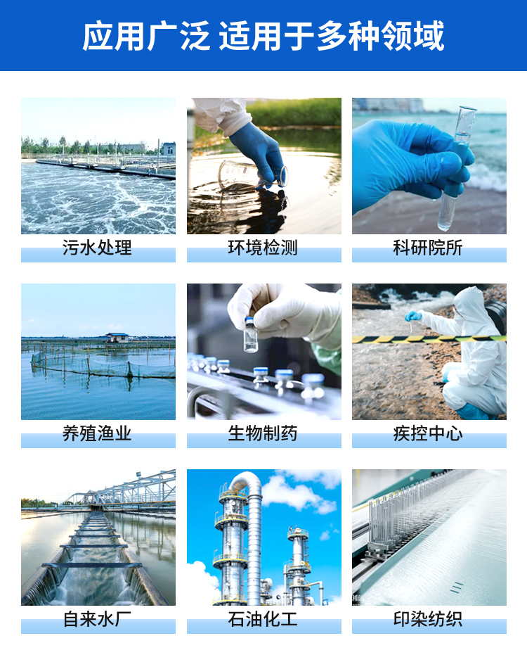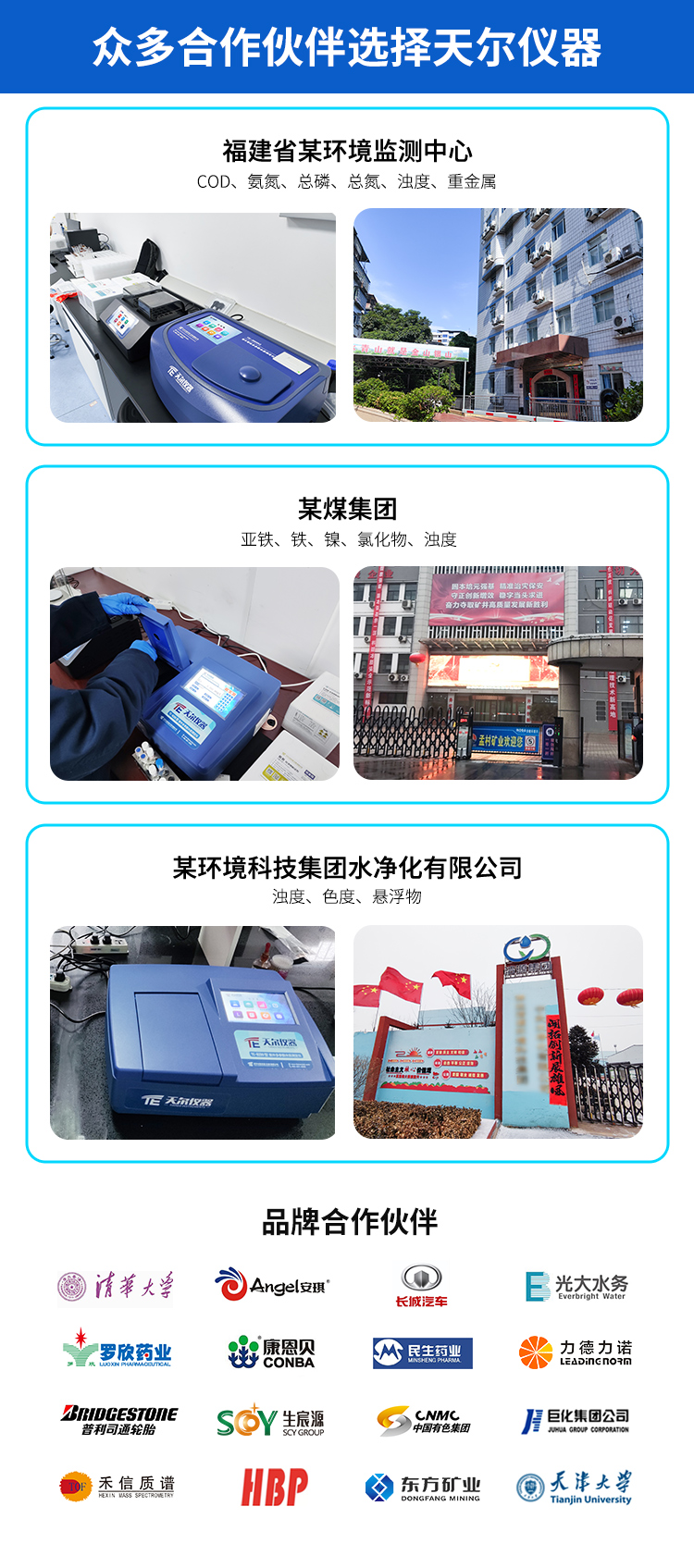 检测项目:COD 、氨氮、总磷、总氮、浊度、色度、悬浮物、重金属等50多项指标