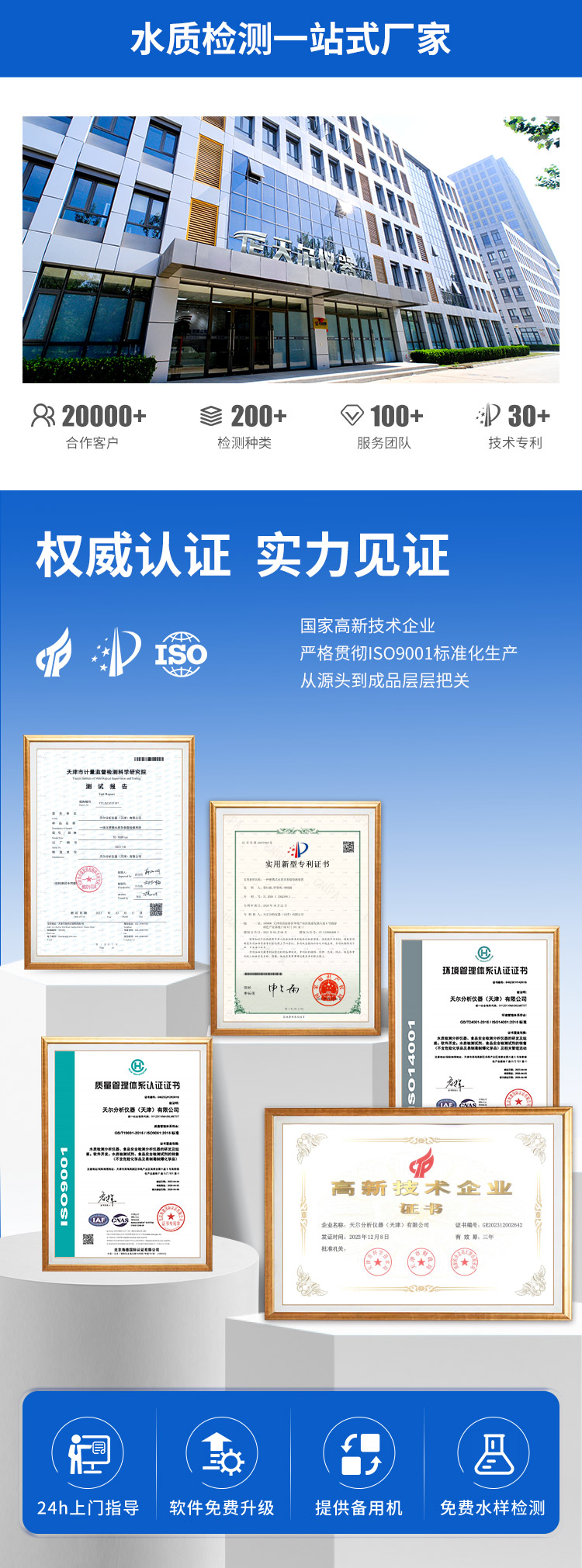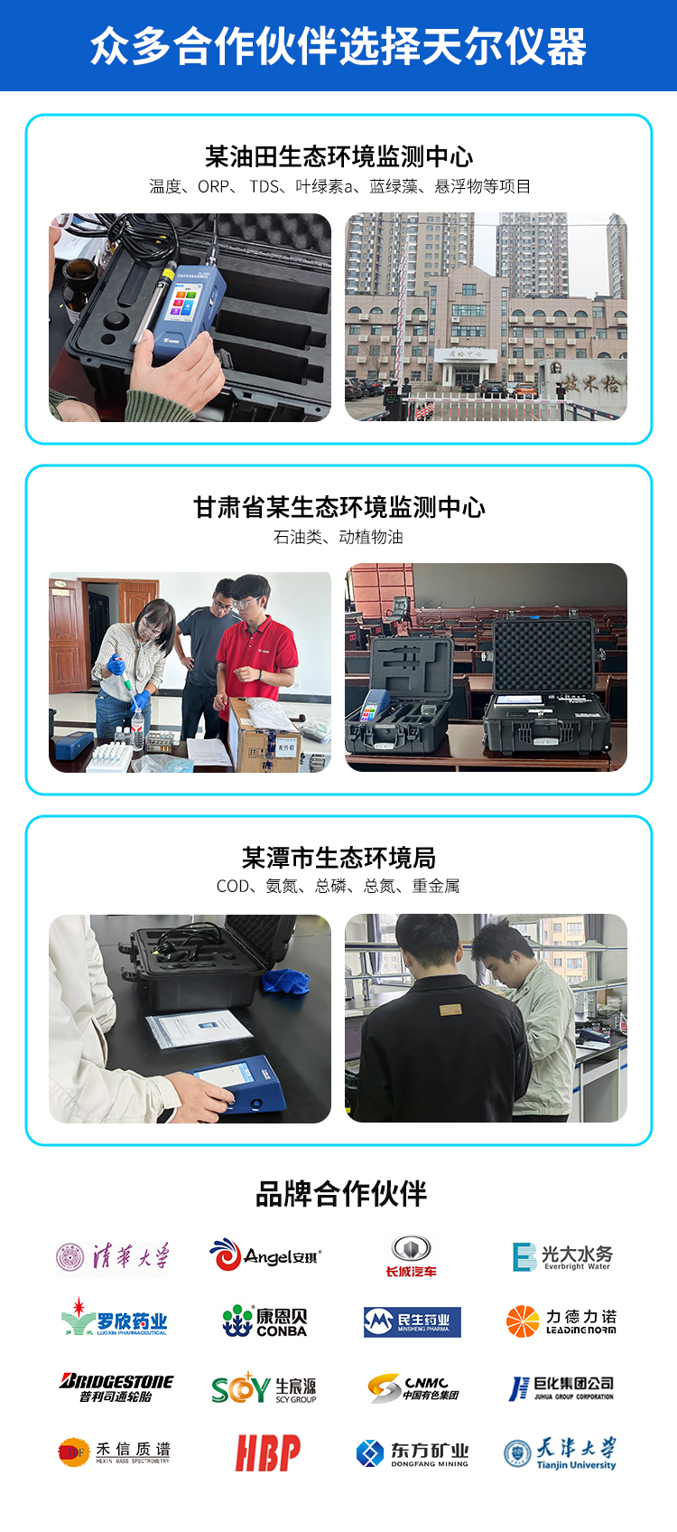 1.检测工具品牌有COD,TO⭕C,氟化物,电导率,漂浮物,叶绿素,蓝绿藻,余氯,pH,水解氧,平均温度,导电率,ORP,TDS,泥中油(可定制化項目);
